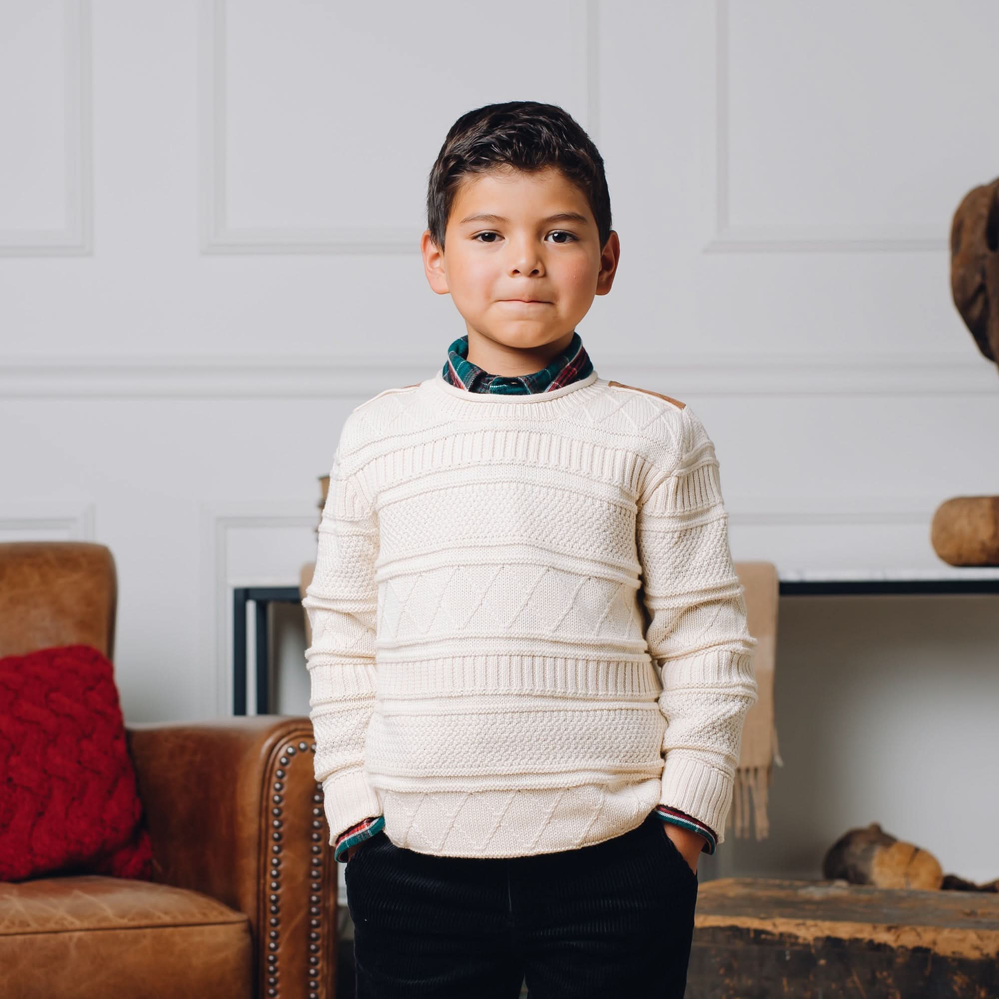 Organic Cable Sweater with Suede Detail - Baby