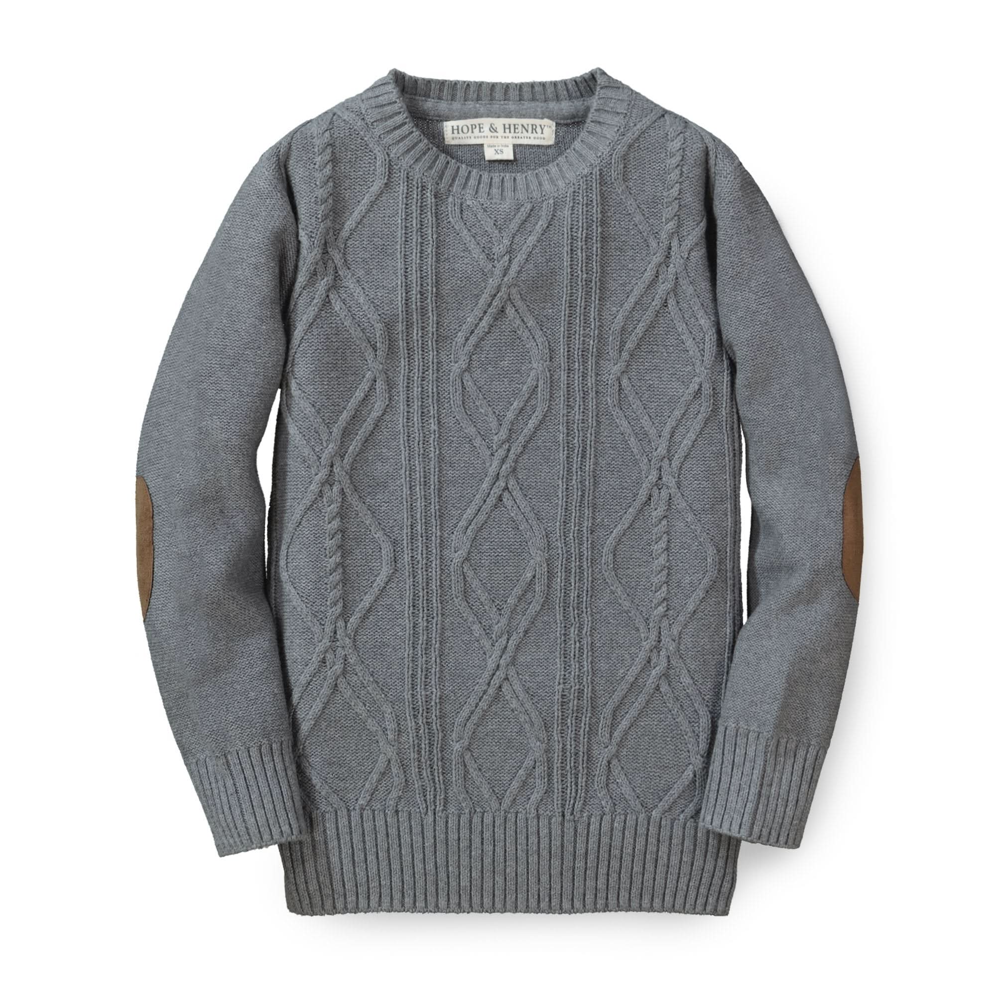 Crewneck Cable Sweater with Elbow Patches